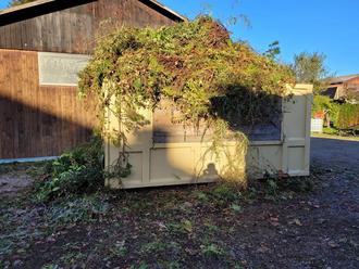 Wir können so natürlich nicht weitermachen und weisen darauf hin, dass im Wiederholungsfall künftig der frei zugängliche Crünmüllcontainer abgezogen werden muss und Grünmüll dann nur noch während der Öffnungszeiten im Wertstoffhof abgeliefert werden kann.