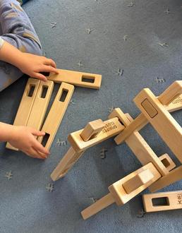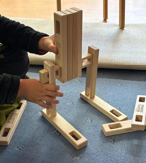 Die Kinder sind begeistert, nehmen die Steckbausteine freudig an und bauen mit großer Freude kreative Konstruktionen.