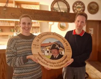 Alfred Neuhauser hätte heuer seinen 89. Geburtstag gefeiert und so galt es, der Zahl "89" als Blattzahl am nächsten zu kommen - und das gelang Stefan Schreieck! Sein Teiler von 117,0 war der beste des Abends und sicherte ihm als erstem Schützen einen Platz auf der von Roland Epple gestalteten Schützenscheibe. Diese Scheibe wird als bleibendes Zeichen der Anerkennung für alle gut sichtbar im Schützenhaus verbleiben.