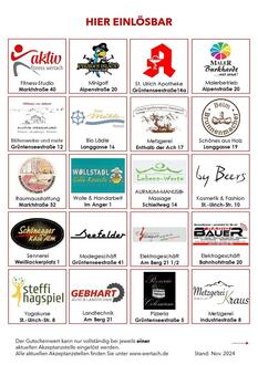 Den Gutschein gibt es im Wert von 10,- €, 15.- € und 25,- € in der Tourist-Info Wertach und kann in teilnehmenden Wertacher Geschäften eingelöst werden. Wir wünschen viel Freude beim Verschenken.