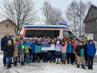 Die vierten Klassen der Grundschule Wertach spendeten 150 € an den „Wünschewagen“ des Arbeiter-Samariter-Bundes.