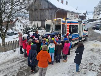 Am Donnerstag, 26.01.2023 überraschte Herr Schlichtherle die Viertklässler und fuhr mit dem Wünschewagen in den Pausenhof der Schule. Die Kinder erfuhren, dass dieses Projekt nur über Spenden finanziert wird. Es möchte schwerkranken Menschen ermöglichen, dass ihr letzter Wunsch noch in Erfüllung geht. In berührenden Erzählungen schilderte Herr Schlichtherle von den Fahrten, die er ehrenamtlich begleitete.