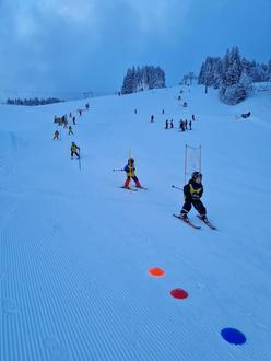 Aber auch die Gruppen, die im Kinderland unterwegs waren, hatten großen Spaß und blieben bei diversen Bewegungsspielen mit oder ohne Ski beim Zauberteppich und Seilliftfahren schön warm.