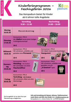 Unser diesjähriges Programm bietet wieder zahlreiche Kurse, wo für jeden was dabei ist, und Kinder lernen ihre Kreativität frei zu entfalten.
