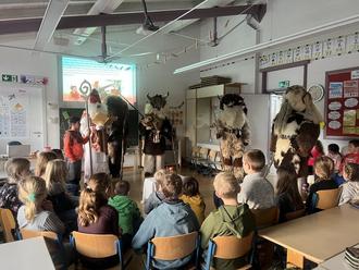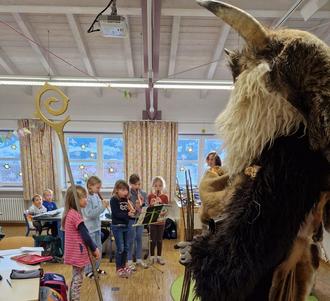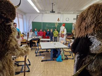 Der Nikolaus, begleitet von vier Klausen, besuchte die Wertacher Grundschulkinder in ihren Klassenzimmern.