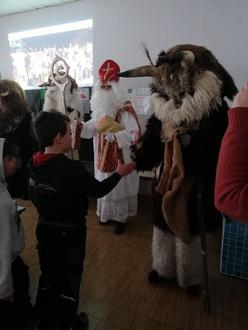 Für leuchtende Augen bei vielen Kindern sorgte der darauffolgende Mittwoch, an dem der Nikolaus mit seinen Klosen alle Klassen besuchte und aus seinem goldenen Buch vorlas. Jede Klasse hatte ein Gedicht oder Lied vorbereitet. Sichtlich erfreut über die schönen Beiträge überreichten die Klosen im Anschluss den Schüler/innen je ein Nikolaus-Säckchen und den Lehrkräften Schokoladen-Nikoläuse. Vielen Dank an den Bischof und seine fünf Klosen.