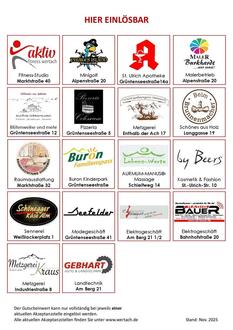 Den Gutschein gibt es im Wert von 10,- €, 15.- € und 25,- € in der Tourist-Info Wertach und kann in teilnehmenden Wertacher Geschäften eingelöst werden. Wir wünschen viel Freude beim Verschenken.