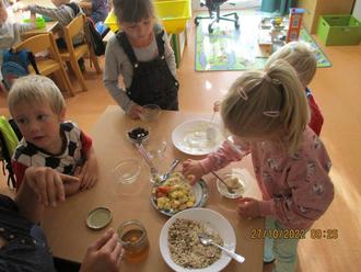Durch das Schulobstprogramm bekommen wir jede Woche frisches Obst, Gemüse und Milchprodukte in Bio-Qualität für unsere Kinder. Die Kinder bekommen so jeden Tag eine gesunde Auswahl, zusätzlich zu ihrer Brotzeit. Außerdem haben wir einen Buffettag für jede Gruppe eingeführt, indem die Lebensmittel mit den Kindern gemeinsam zu feinen Mahlzeien zubereitet werden.