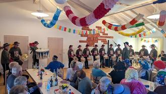 Die Stimmung war bestens beim Faschingsnachmittag der 60- plus im Wertacher Pfarrheim. Nach der Begrüßung durch das 60-plus-Team startete das Programm mit Pfarrer Franz Reiner, der die Gäste mit einer lustigen Geschichte rund um eine ganz besondere Fußwaschung unterhielt. Anschließend folgte eine Hutmodenschau der etwas anderen Art. Von Hubert Linder mit viel Humor moderiert, präsentierte das 60-plus-Team eine bunte Auswahl an Kopfbedeckungen: vom edlen Sommerhut über den Cowboyhut bis hin zum Hutmacherhut. Elegantes, Witziges und Kurioses – es war alles dabei. Natürlich durfte auch an diesem Nachmittag Kaffee und leckerer Kuchen, von den Gastgeberinnen gebacken, nicht fehlen. Für besonders viele Lacher sorgte anschließend Anni Mungenast die als Uhrmacherin mit einer vollgepackten Holzkraxe, randvoll mit Uhren aller Art, in den Saal marschierte. In ihrem Sprechgesang zu „Grüß euch Gott alle miteinander“ erzählte sie von Uhren, die nicht mehr gehen und nun auf der Wanderung verkauft werden sollen. Wie immer war es ein Auftritt voller Humor und Spielwitz, der von den Gästen mit großem Applaus belohnt wurde. Ein Höhepunkt des Nachmittags war der Auftritt der kleinen Trommler, angeführt von Major Tade Kleinhans, den diese souverän absolvierten. Wie es gute Sitte ist beim 60-plus-Nachmittag, stellten sich die Akteure, unterstützt von Ulli Hösle, den Gästen namentlich vor, worüber sich die rund 60 anwesenden Frauen und Männer sehr freuten. Für den perfekten musikalischen Rahmen sorgten an dem Nachmittag wieder Karin Ollech, Renate und Hubert Linder mit Liedern verschiedenster Genres. Es wurde geschunkelt und mit viel Freude das Tanzbein geschwungen. Kein Wunder also, dass sich nach dem Ende der Veranstaltung alle gut gelaunt auf den Heimweg machten.