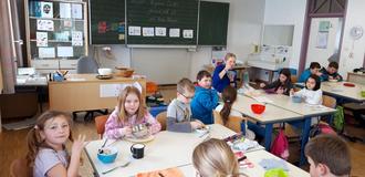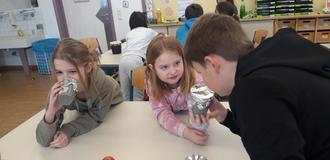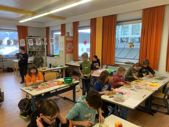 Im Rahmen des Projektes „Allgäuer Kinder - gesund und fit“ beschäftigten sich die 3. und 4. Klassen mit gesunder Ernährung. Zunächst durchliefen die Klassen mit der Referentin Ramona Nägele einen Sinnesparcours. Verschiedene Lebensmittel wurden gerochen, gefühlt, gegessen und sogar erhört. Es zeigte sich, welch gute Obst- und Gemüseexperten die Schüler schon sind.