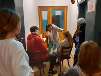 Die Proben zu den Aufführungsterminen laufen auf Hochtouren. Neben den Hauptproben finden zahlreiche Einzel- und Zusatzproben statt, um an den Feinheiten zu feilen. Dazu gesellen sich die Nebenschauplätze. Es mussten die Plakate und Flyer gestaltet und verteilt sowie das Bühnenbild gebaut werden. Wichtig ist auch das richtige Schminken, denn im Theater müssen alle vorab in die „Maske“. In einem Workshop vermittelte Renate Beer, mit ihrer Expertise, den Jugendlichen wichtige Details und Tipps. Jetzt müssen weitere Requisiten zusammengesucht oder gekauft und die Theaterstücke technisch unterstützt werden. Alle Beteiligten sind ziemlich eingespannt – mit großer Freude und Motivation.