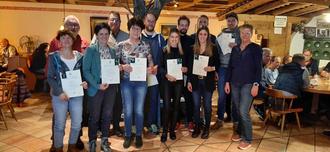 40 Jahre SSV: v. l. Herrmann Knoll (1. Vors.), Birgit Kleinheinz, Andreas Angerer, Waltraud Müller, Karin Willer, Bernd Hafenrichter, Beate Lochbihler, Christian Meier, Simone Füß, Winfried Tichacek, Stephan Hengge, Sabine Houdek (2. Vors.)