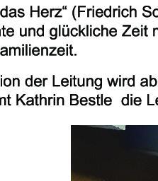 Die Position der Leitung wird ab Mitte Mai von Fr. Stefanie Bardon übernommen. Bis dahin übernimmt Kathrin Bestle die Leitung.