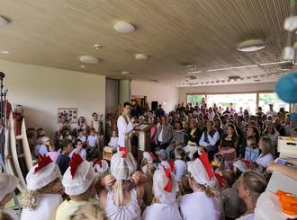 Am 1.07. 2023 fand bei guten Wetterbedingungen unsere Einweihungsfeier des Teilanbaus statt. Das Fest begann um 10.30 Uhr mit einer Andacht, gestaltet durch Hr. Pfarrer Kreuzer, und Segen für das Haus. Die Kinder spielten das Kindermusical „Herz eines Adlers“. Im Anschluss hatten alle die Möglichkeit die Räumlichkeiten zu erkunden. Für das leibliche Wohl war ebenfalls gesorgt. Durch unsere vielen aktiven Vereine in der Gemeinde Kaltental konnten wir miteinander ein gelungenes Fest für Groß und Klein feiern.
