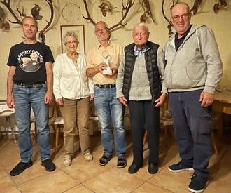 Nachdem beim letzten Spieltag die drei Erstplatzierten von der Vereinsmeisterschaft 2023 anwesend waren, konnte – wenn auch etwas verspätet – nachträglich die Siegerehrung durchgeführt werden. Im Jahr 2023 sicherte sich Berthold Ziegler mit 85 Wertungspunkten erstmals den Titel Vereinsmeister, obwohl er nach dem vorletzten Spieltag noch auf Platz 4 rangierte. Vizemeister 2023 wurde Robert Feifel mit 81 Punkten. Knapp dahinter sicherte sich Inge Ziegler mit 80 Punkten den 3. Platz. Auf jeden Fall geht es bisher als Novum in die Vereinsgeschichte ein, dass sich bei der Vereinsmeisterschaft 2023 mit dem Vereinsmeister und der Drittplatzierten zwei Familienmitglieder (Sohn und Mutter) einreihten. Auf den Plätzen 4 und 5 landeten Josef Hauser und Max Gebuhr mit jeweils 77 Wertungspunkten. Dicht dahinter platzierte sich Vorjahressieger Josef Bauer mit 76 Punkten auf dem 6. Rang. Punktgleich mit jeweils 75 Punkten rangierten der Vizemeister aus dem Jahr 2022, Siegfried Metzger, auf dem 7. Platz und Werner Köbler auf dem 8. Platz.