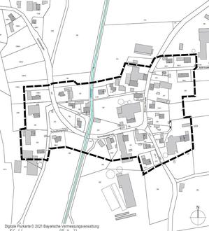 Lageplan Bebauungsplan mit Geltungsbereich, © Bayerische Vermessungsverwaltung 2021