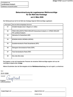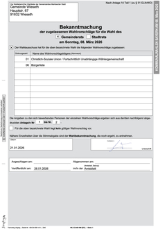 Bekanntmachung zugelassene Wahlvorschläge