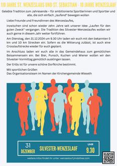 inzwischen sind schon wieder zehn Jahre seit unserer Idee „Laufen für den guten Zweck“ vergangen. Die Tradition des Silvester-Wenzeslaufes wollen wir auch gerne in diesem Jahr weiter fortführen.