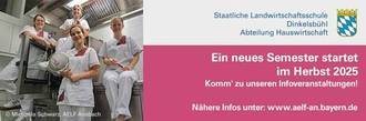 Die Veranstaltung gibt einen Überblick zum Schulbesuch der Fachschule für Ernährung und Haushaltsführung. Es werden organisatorische Fragen rund um die Schule geklärt. Im Mittelpunkt stehen insbesondere vermittelte Unterrichtsinhalte, Unterrichtszeiten und -dauer sowie für die Studierenden entstehende Kosten. Ein digitaler Rundgang durch das Schulgebäude und eine Quizfrage runden das Informationsangebot ab. Alle Interessierte sind herzlich eingeladen. Nähere Informationen sowie den Zugang zur OnlineVeranstaltung erhalten Sie über die Homepage des Amtes für Ernährung, Landwirtschaft und Forsten (AELF) Ansbach unter https://www.aelf-an.bayern.de/ (siehe auch QR-Code). Eine Anmeldung ist nicht erforderlich.
