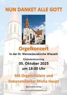 | 18 Uhr | Orgelkonzert mit Dekanatskantor Micha Haupt und Orgelschülern. Eintritt frei |