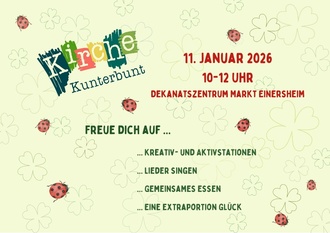 | 10.00 Uhr | Einladung zur Kirche Kunterbunt nach Markt Einersheim |