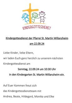 | Will | 10:30 | Kindergottesdienst im Kindergarten |