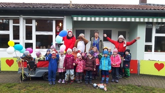 Die Kinder der Naturkita „kleine Wölfe“ und die Kinder der Kindertagesstätte St. Martin feierten eine ganze Woche lang Fasching. Immer wieder trafen sie sich in diesen närrischen Tagen, um zusammen Spaß zu haben. Fröhlich und lustig verkleidet schauten sie gemeinsam einem Kasperltheater zu, tanzten und zauberten miteinander und ließen sich die Leckereien vom Faschingsbüffet schmecken. Zum krönenden Abschluss machten sich die „kleinen Wölfe“ und die Kinder der Bärengruppe mit zwei farbenfroh geschmückten „Faschingswägen“ auf den Weg durch Willanzheim. Dank der Rasseln, der Trommeln und der scheppernden Dosen war der ausgelassene Krachmacherumzug schon von weitem zu hören und verbreitete überall gute Laune. So manche Familie jubelte den Kleinen zu und erfreute sie mit einem Bonbonregen. Das war wirklich ein großes Vergnügen!