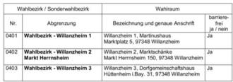 Die Wahllokale sind von 8 bis 18 Uhr geöffnet, Briefwahlunterlagen können nur bis 13 Uhr in den Wahllokalen abgegeben werden. Später können die Briefwahlunterlagen nur noch im Wahlamt in Iphofen abgegeben werden.
