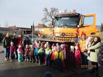 Auf Initiative unserer Erzieherin Sabrina Dees wurde zusammen mit Kreisbauhofleiter Andreas Schneider ein Besuch der Straßenwärter organisiert und ein kleines Programm zusammengestellt. Voller Vorfreude und mit Spannung wurden die Mitarbeiter des Kreisbauhofs Hoheim bei uns im Kinderhaus Sternenhimmel in Hüttenheim empfangen.