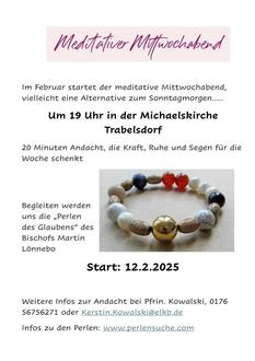 Neu! Meditativer Mittwochabend um 19 Uhr in der Michaelskirche Trabelsdorf