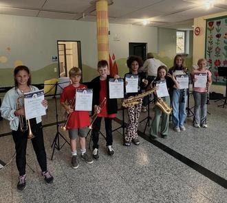 Mit dem Ende der 4. Klasse an der Grundschule in Walsdorf endet für die Kinder auch ihre zweijährige Bläserklassenausbildung. Diese konnten sie mit der Juniorprüfung erfolgreich abschließen, was eine der ersten Musikerleistungsprüfungen ist. Die Juniorabzeichen und die Urkunden wurden beim Schuljahresabschlusskonzert des Vereins von der Bläserklassenleitung Nina Hagen überreicht.