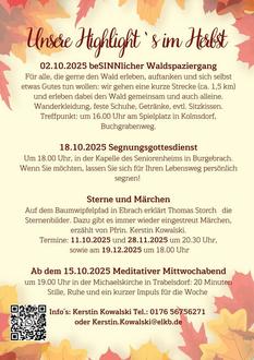 | 18.00 Uhr | Gottesdienst in Burgebrach im Seniorenheim, nächster Termin am 18.10.2025 - Segnungsgottesdienst - |