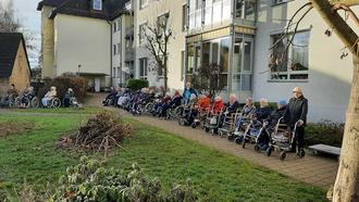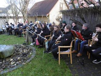 Bei herrlichem Wetter und angenehmen Temperaturen am Silvestertag versammelten sich die Senioren mit ihren Betreuerinnen im Garten und auf den Balkonen, um den beschwingten Klängen von Polkas und Märschen, gespielt vom Musikverein, zu lauschen.