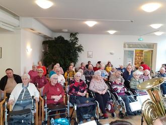 Stadt, Musikverein und Seniorenbeirat bereiteten den Bediensteten sowie Bewohnerinnen und Bewohnern des Senioren – Wohnens einen musikalischen Jahresausklang. Die Senioren mit ihren Betreuerinnen versammelten sich im Speisesaal, um den besinnlichen Weisen zur Nachweihnachtszeit und anschließend beschwingten Klängen von Polkas und Märschen, gespielt vom Musikverein unter der Leitung ihres Dirigenten Michael Maag zu lauschen.