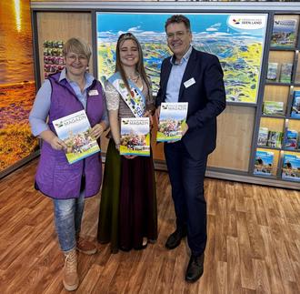 Das königliche Lächeln strahlte gleich doppelt bei der Präsentation des Urlaubsmagazins: Ein Interview mit Leoni Dengler als oberster Markenbotschafterin gehört zum Inhalt. Live am Stand und auf Seite acht war und ist sie mit ihrer original fränkischen Tracht und der Krone ein Blickfang. Das hochwertige Produkt hat inhaltlich aber noch einiges mehr zu bieten, wie Hans-Dieter Niederprüm betonte: „Auf über 70 Seiten zeigen wir das Fränkische Seenland in allen seinen Facetten, von den Seen bis zum Land, von Freizeitspaß bis zu Kulturerlebnissen und von besonderen Unterkünften bis zu kulinarischen Genüssen. Auch viele unserer Partner nutzen diese hochwertige Plattform, um sich und ihre Angebote zu präsentieren.“