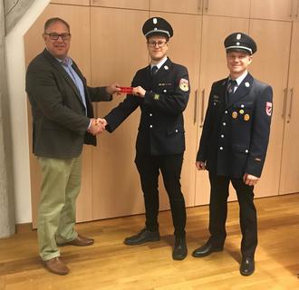 Am Donnerstag, den 26. Oktober 2023, überreichte Bürgermeister Michael Dörr im Auftrag von Herrn Landrat Dr. Ludwig, offiziell die Namensabzeichen an den neuen Kreisbrandmeister Manuel Wechsler. Manuel Wechsler ist bereits seit langem aktiver Feuerwehrdienstleistender der städtischen Feuerwehr. Selbstverständlich erschien zu diesen Termin auch der akutelle Kommandant der städtischen Wehr, Herr Michael Schmidtkunz. Bürgermeister Michael Dörr zeigte sich sehr erfreut, dass wieder ein Wolframs-Eschenbacher in der Feuerwehrführungsebende des Landkreises vertreten ist.