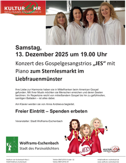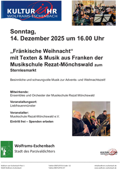 Zum romantischen Sternlesmarkt bezaubern Ensembles und das Orchester der Musikschule Rezat-Mönchswald im Liebfrauenmünster Wolframs-Eschenbach mit adventlicher & weihnachtlicher Musik
