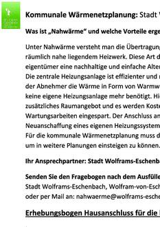 wir sind über die gute Rücklaufquote des Erhebungsbogens als Grundlage für die derzeit laufende kommunale Wärmeplanung sehr erfreut und bedanken uns bei allen Bürgerinnen und Bürgern die sich bisher an der Abfrage beteiligt haben.