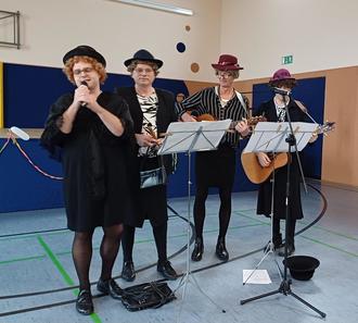 Im Anschluss besang ein neues Quartett bestehend aus den Brüdern Wolfram und Jens Stellwag sowie Heinrich Kunzmann und Thomas Geidner „das Leid der Gattinnen mit ihren Ehemännern“ um dann im Anschluss für das Herrenballett der Kolpingsfamilie Platz zu machen, welche mit einem professionellen Showtanz unter der Verwendung von Filz das Publikum unterhielten. Beide Gruppen wurden mit tosendem Applaus bedacht.