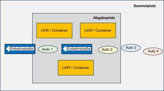 Am Sammelplatz ist darauf zu achten, dass Containerstandplätze sowie Zufahrten für die Entsorgungsfahrzeuge freigehalten werden. Da bei jeder Sammlung drei Lkw im Einsatz sind, wird entsprechend Platz benötigt. Sollte es zu Wartezeiten kommen, sind Anliefernde gebeten, Abstand zu halten, damit die Fahrzeuge problemlos rangieren können. Die Anlieferung erfolgt nach Möglichkeit im Einbahnstraßensystem. Es ist zwingend erforderlich, eine Warteschlange zu bilden und im Fahrzeug sitzen zu bleiben. Ein vorzeitiges Aussteigen oder Weitergehen zu Fuß beschleunigt den Ablauf nicht. Auch Anliefernde zu Fuß oder mit dem Fahrrad müssen sich in die Warteschlange einreihen und besonders auf ihre eigene Sicherheit achten. Problemabfälle dürfen keinesfalls vor dem Eintreffen der Sammelfahrzeuge abgestellt werden. Austretende Chemikalien können Mensch und Umwelt gefährden. Die Abfälle sind bis zur Aufforderung durch das Fachpersonal bei sich zu behalten. Die Produkte müssen in der Originalverpackung angeliefert werden. Substanzen dürfen nicht miteinander vermischt werden, um gefährliche chemische Reaktionen zu vermeiden. Die Anlieferung hat in stabilen Kisten, Kartons oder verschlossenen Kanistern zu erfolgen.