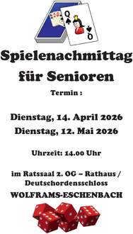 Anmeldungen sind nicht zwingend, aus Gründen der Übersicht jedoch hilfreich. E-Mail erwin.seitz.we@t-online.de oder Tel. 1300.