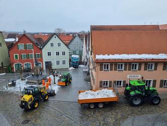 Mitarbeiter der Stadt Wolframs-Eschenbach beim Testlauf für das Snowfarming