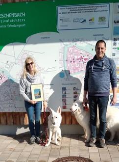 Die Stadt Wolframs-Eschenbach dankte den treuen Gästen mit einer Urkunde und einem kleinen Präsent. Familie Kegel aus Egolfsheim (bei Frankfurt a. M.) schätzt unseren Wohnmobilstellplatz aufgrund der zentralen und dennoch ruhigen Lage sehr und vor allem auch das Stadtbild von Wolframs-Eschenbach. Besonders angetan hat es dem Ehepaar auch die „belebte“ Innenstadt und die gute Versorgung der Gäste (Gastronomie, aber auch Bäcker, Metzger uvm.). Wir sagen ebenfalls herzlich Danke und freuen uns sehr, Familie Kegel weiterhin bei uns in Wolframs-Eschenbach begrüßen zu können.