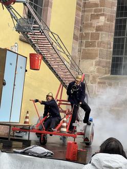 Für die zwei Brandmeister der Pariser Feuerwehr mit stark überspitzten französischen Akzent war keine Herausforderung zu groß und deshalb schwangen sich unsere waghalsigen Helden auf Ihre Drehleiter und entfachten ein fantasievolles Spektakel, tauschten Ihre Rollen und Kostüme in Windeseile um Ihre Herzen für diese berührende Geschichte zu entflammen. Die Zuschauer wurden immer wieder in die Handlung mit einbezogen. Von der ersten bis zur letzten Minute hatten die Erfurter das Publikum in Ihren Bann gezogen.