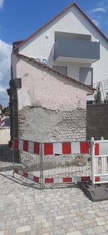 Weiterhin haben inzwischen die Verputzarbeiten und die Sandsteinsanierung an der historischen Kapelle begonnen.