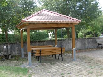 Auf Anregung des Seniorenbeirates wurde im Friedhof nahe Südeingang ein Pavillon mit einer Sitzgruppe errichtet. Das kleine Bauwerk soll durchaus zum Verweilen und zur Kommunikation genutzt werden. Vor allem bei starkem Sonneneinfall und bei Überraschungsregen dient es zum entsprechenden Schutz. Insgesamt passt sich das Pavillon, das dem Stil der Leichenhalle angepasst wurde, an dem ausgewählten Platz sehr gut ein.