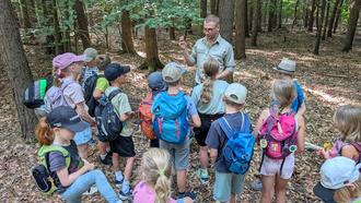 Beim zweiten Ferienprogrammtag am Mittwoch, den 13. August stand eine Waldwanderung mit dem Förster Manuel Scheerer von der Forstdienststelle Bechhofen auf dem Programm.
