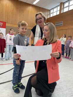 Im Anschluss sangen die Grundschulkinder der Ministerin aus München noch ein Lied. Kindergartenkinder aus Arnstein bedankten sich bei den Kindern der Grundschule mit einem selbstgemalten Plakat und ein paar Süßigkeiten.