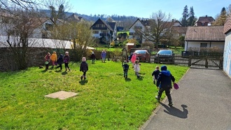 Vor den Ferien hatte doch tatsächlich der Osterhase die Nester der Kinder gefüllt und im Garten versteckt. Jedes Kind hat zum Glück sein Nest mit bunten Eiern und allerlei Naschereien entdeckt und glücklich verabschiedeten sich alle in die Osterferien.