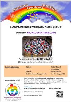 Spendenaktion „Kronkorken sammeln“ zu Gunsten der Elterninitiative Regenbogen für leukämie- und tumorkranke Kinder Würzburg e.V.